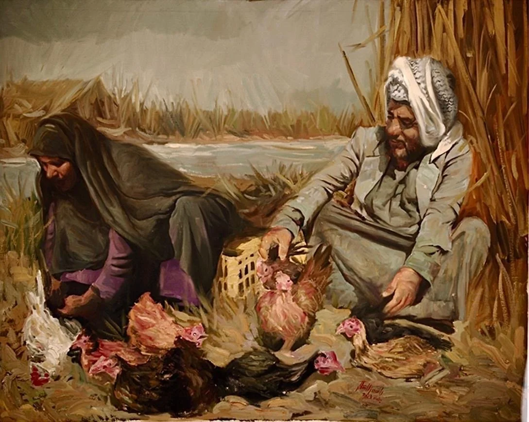 One of the youngest artists in the exhibition, Bassim Al-Shaker (b. 1986, Baghdad, Iraq) is stylistically one of its most traditional, making oil paintings that would very much impress his teachers at the local academy. Eschewing any sign of avant-gardism he paints scenes of the southern marshlands, suggesting a lifestyle there of unbroken tradition. The recent reality is very different, of course, this being a place that suffered terribly during Saddam’s dictatorship. While perhaps not straightforwardly documentary, Al-Shaker’s series reveals a side of Iraq’s landscape that even many Iraqis have never seen first-hand.
